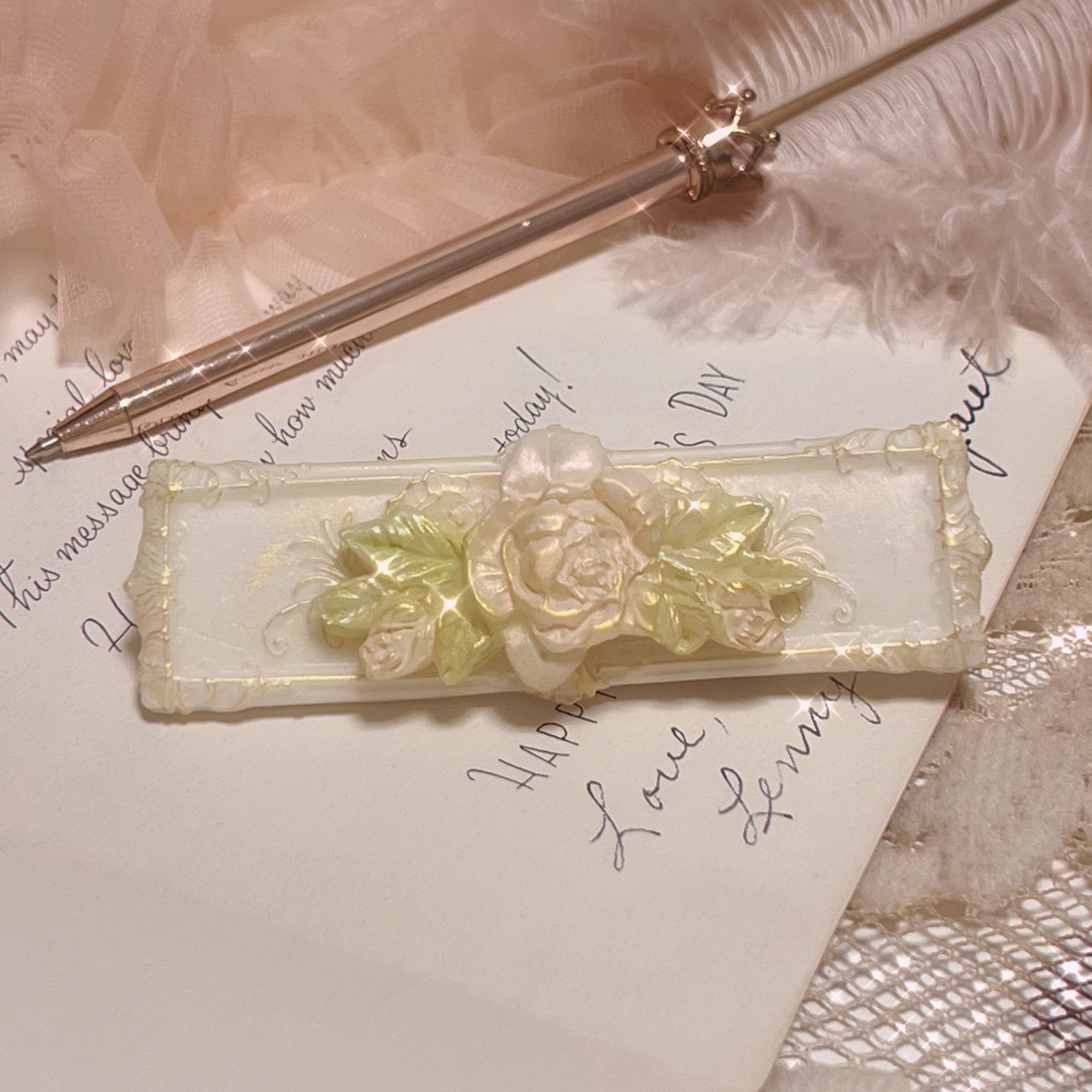 摘み取って作った薔薇のヘアクリップは